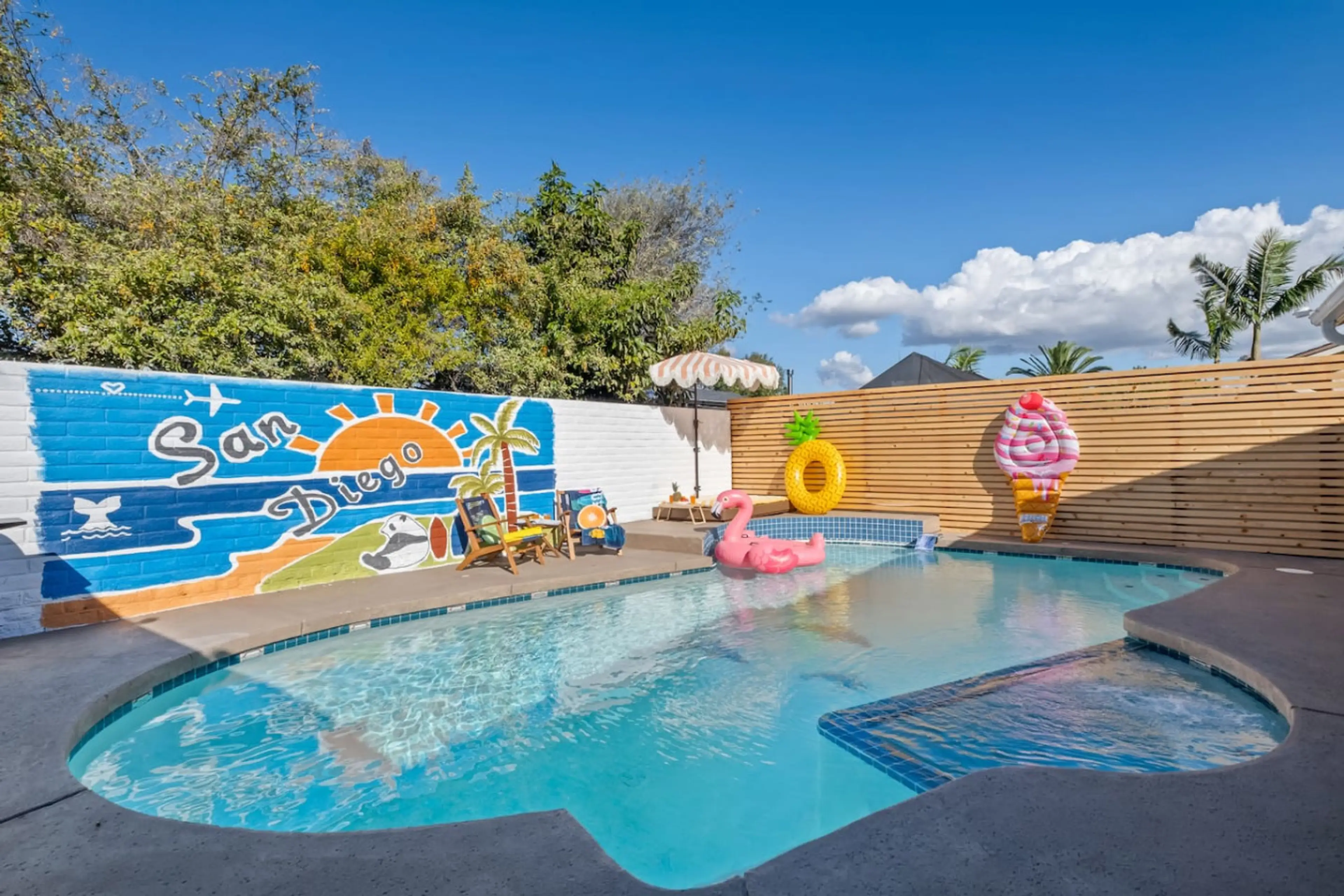Dive in, steam out, and press play โ private pool ๐โโ๏ธ, outdoor sauna ๐ฅ & movie theater ๐ฌ all in one fun San Diego stay! ๐๏ธ Welcome to Your San Diego Fun House! ๐ Bring the whole crew to this playful San Diego pool house with its very own heated pool, outdoor sauna, arcade, and movie room. T...