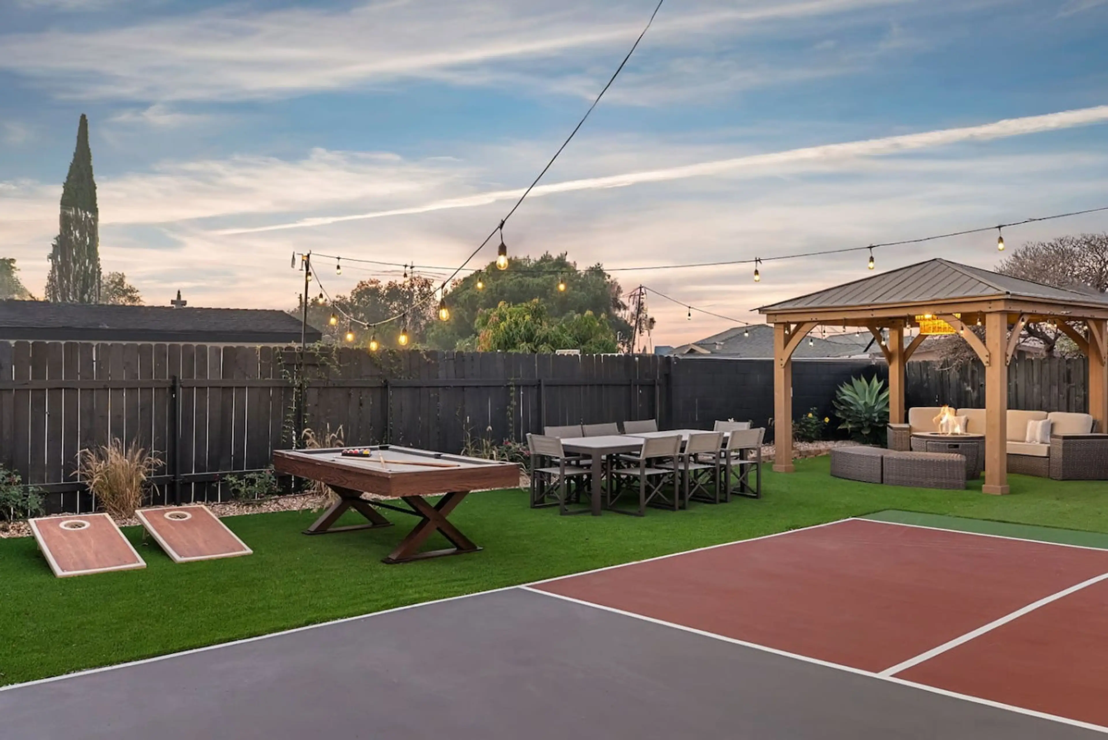 Book a luxury vacation rental just 10 minutes from Disneyland, perfect for families and groups. This spacious 4-bedroom, 3-bath home features a private pickleball court, relaxing hot tub, cabana lounge, and BBQ grill for outdoor fun. Each bedroom includes a TV and comfortable king-size bed. Ideal fo...
